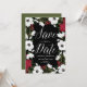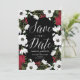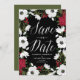 Anpassade spara datum meddelande med vita och röda blommor och moderna kalligrafiskript. Det här är en del av en bröllop-svit "ANEMONE BLOOMS" - matchande artiklar finns tillgängliga.
