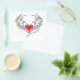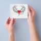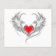 Artiskt målat rött hjärta med ängel vingar grått, dekorerat med svart jämn kontur.
