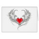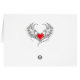 Artiskt målat rött hjärta med ängel vingar grått, dekorerat med svart jämn kontur.