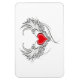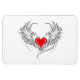Artiskt målat rött hjärta med ängel vingar grått, dekorerat med svart jämn kontur.