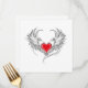Artiskt målat rött hjärta med ängel vingar grått, dekorerat med svart jämn kontur.