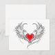 Artiskt målat rött hjärta med ängel vingar grått, dekorerat med svart jämn kontur.
