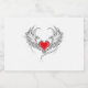 Artiskt målat rött hjärta med ängel vingar grått, dekorerat med svart jämn kontur.