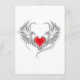 Artiskt målat rött hjärta med ängel vingar grått, dekorerat med svart jämn kontur.