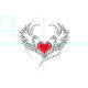 Artiskt målat rött hjärta med ängel vingar grått, dekorerat med svart jämn kontur.