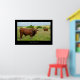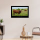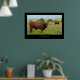 En poster utskrift som visar en stolt röd Angus-tjur och boskap. Den här tryckningen är isolerad på vitt och skulle vara perfekt för alla som äger rödangusboskap.