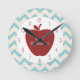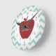 Red Apple Aqua Chevron Teacher Clock Rund Klocka