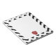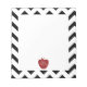 En gåva till lärare med en illustration av ett rött äpple över en svart schevronbakgrund.