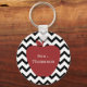 En gåva till lärare med illustration av ett rött äpple över ett svart och vitt schevron mönster. Anpassa med ditt namn på äpplet.