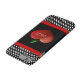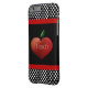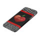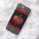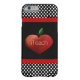Lärarens iPhone 6 fodral är svart, med svart och vitt polka dots, överst och grund och kantad med rött band. Cute-grafik av ett stort rödhjärtformat äpple, dekorerar mitten i fodral. Text i vitt, läser iTeach. Anpassa texten så att du kan läsa vad du vill.