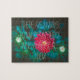 Jigszawapussel med ett foto av en känslig asterblomma på mörk grönt bakgrund. Röda påsken symboliserar kärlek och tro. Nattträdgård, glamorös, gotisk, mystisk scen. Du kan radera texten "Det finns alltid blommor för dem som vill se dem" eller ersätta den med ett eget meddelande. Om du vill ha fler ändringar (teckensnitt stil, färg, textposition) klickar du på Redigera design.