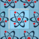 Red Atoms Tiled Design Fabric, med anpassadets bakgrund färg.