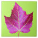Ceramic tile that features the photo image of a red autumn Maple leaf contrasted against a bright, green background. A colorful, botanical design! Makes a pretty kitchen trivet. Select your ceramic tile style.