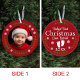 Vi presenterar vår enastående anpassningsbar-fotoornament, en omhuldad keepy för baby:s första jul! På ena sidan, fånga julhelgens magi med ditt favoritfoto, elegant utformat av delikat rött snöflingor och spola grönten på röd bakgrund. På motsatt sida hedrar du minnet av detta speciella ögonblick med ditt barns namn och året i vitt på röd bakgrund. Denna prydnadsande blandning av helgdagarnas glädje med det tidlösa minnet av baby:s första jul. Gör den här julhelgen verkligen oförglömlig med en personlig! Foto och text kan redigeras från produktsidan. Om du vill ändra teckensnittet stilar eller färg användor du verktyg i designen.