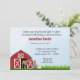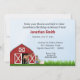 Red Barn Birthday Bjud in pojkar eller flickor som kärlek lever på gården. Design har en häst, en cowboy och en gris i gräset med blå himmel i bakgrunden.