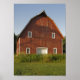 Rustic Red Barn Front Poster Print ger en unik gåva till en gård eller en lada älskare. I anpassningsbarna poster land ett scenfotografi av en röd lada, grönt och blå himmel vid soluppgången på landsbygden Midwest Illinois.