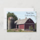 Skicka ett varmt tack- och uppskattningsmeddelande för gåvor som tagits emot efter en avslappnad förlovningsfest, möhippa eller giftermål med det charmande Landsbyggsbröllopet Red Barn Flat Tackkort. Tackkort av den rustiska chicens anpassningsbar har ett fyrkantigt lantbruksfoto av en vättad röd trälada och silo.