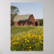 Red Barn och Gult Wildblommor Poster