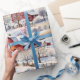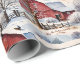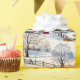 A beautiful winter scene with snow covered red barns and a vintage farm in winter.