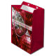 Giftpåse med en snyggt med glittrande rödbrödder och julbalar i silver. Ett anpassade som du kan anpassa med egen text, bilder och egna idéer. Bilden skapades med hjälp av ett originalfoto och digitala tekniker.