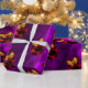 Ett mycket lust, lila julomslag med en färgstark mönster av små röda julbalkar, med gyllene bågar på toppen. Denna fantastiska papper för julomslutning kommer att bidra med både en elegant och en festlig beröring till den här julhelgen.