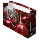 Giftpåse med en snyggt med glittrande rödbrödder och julbalar i silver. Ett anpassade som du kan anpassa med egen text, bilder och egna idéer. Bilden skapades med hjälp av ett originalfoto och digitala tekniker.