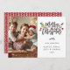 Modern God jul-fotokort innehåller röda bär, grönt botaniskt löv med rött stickande mönster på baksidan.