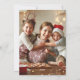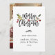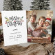 Modern God jul-manuskort har röda bär, grönt botaniskt löv med ett familjefoto på baksidan.