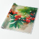 Papper julomslutning skildrar en vattenfärgskonstruktion i elegantens blommigt med feta röda bär och grön.
