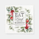En vackert festlig och elegant helgdag hade en temainriktad utformning med röda bär och grön på vit bakgrund designad för bröllop, duschar, årsdag party eller andra evenemang som firar kärlek under jul- eller vintersäsongen. Den typiska, gammaldags stil-texten inbjudan är paret till "EAT, Drink och MARRIED". En textmall ingår för att anpassa den med namnen för bruden och brudgummen eller paret.