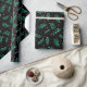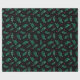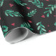 Snyggt svart festive-emballage pappert tryckt med ett enkelt klassiskt mönster av grönt löv och röda bär. Perfekt för elegant som täcker in julklappar. Bran kan välja en traditionell vinter, skogsmark och stil-rustik.