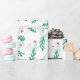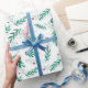 Vit snyggt festive-omslag papper tryckt med ett klassiskt mönster av grönt löv och röda bär. Perfekt för elegant som täcker in julklappar. Bran kan välja vinter, skog och stil-rustik.