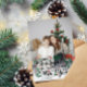 Traditionellt julfotokort med God jul och ett gott nytt år i en charmerande stil med en av dina släktingar och gröna och röda bär.