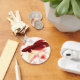 Drake Fotografi visar en ljusröd betafisk som simmar i en fiskskål som tittar vid reflektionen i färgaden i glaset. En underbar gåva till akvariumentusiaster och djur älskare!