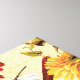 © Lisa Audit/Vild Apple. En vacker röd fågel i en blommigt trädgård. Blommorna är i röda nyanser, orange och gult med vita beröringar.