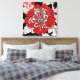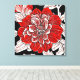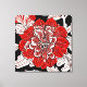 En stor, röd, kamellablomma, i ett Art nouveau inspirerat stil, med blommigt i svartvitt