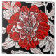 Tile i en stor, röd, kamelliablomma, i ett Art nouveau inspirerat stil, med blommigt i svartvitt