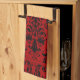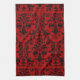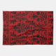Red & Black Blommigt Swirls Damask Monogram Kökshandduk