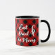 En röd och svart buffel kontrollerar bakgrunden med ord Eat Drink och Be Merry. En unik gåva för speciella dagar, t.ex. en födelsedag eller helt enkelt för att du eller din speciella person kärlek har buffelcheckdesignen.