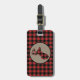 Bakgrunden på bagagetaggen är en röd och svart buffel som pläderas mönster. I mitten finns en brunt banderoll med en motsvarande röd och svart plaid silhouette-hjort. Baksidan av märkrn är svart med två fält för att du enkelt ska kunna läsa anpassningsbar i vitt.