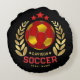 This soccer-inspired design features a high-contrast red, black, and gold color palette that gives it a bold, eye-catching presence. The rich tones and clean layout create a strong visual identity that stands out in any fan space. The design can be personalized with custom text, making it a meaningful choice for soccer lovers. Applied to a round pillow, it works well as a decorative accent and makes a great gift for occasions like soccer birthdays, Father’s Day, or back-to-school room updates.