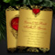 Bröllopation med rött, svart och guld med elegant guld hjärta på svart och guld. Lägg bara till din händelseinformation.