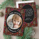 Festive Red Black One line art julfamiljs fotokort. En konst i rött och rosa på svart bakgrund. Festiv och modern helgdag-design med ett foto i ett runt ram. Lägg till foto, namn och text på baksidan.