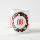 Anpassa din morgonbrygga med vår anpassningsbar jumbo mugg med en fantastisk röd och svart ro-blommigt-kaskaddesign. Det här vackert designade mugg visar ditt namn på den lämnat, efternamnet på högerna och initialer i mitten, skapar det en perfekt för dig själv eller en älskad. Perfekt för alla tillfälle, det här tåliga mugg kombinerar elegans och funktion och ser till att drycken stannar vid perfektens temperatur. Bygg upp ditt unika stil med vår personlig-jumbo mugg