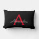 Red Black Script Girly Monogram Namn Lumbarkudde