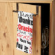 Kökshanddukar som säger tack designad med rött och svart Tack på flera språk och en rad olika typsnitt stilar över vitt.