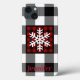 Detta moderna och trendig svarta och vita Buffalo Play-mobilfodral har en stor vit centralsnöflinga på en röd och svart mindre plaid-sektion, tillsammans med anpassade text, skapar den perfekt för en jul- eller vinterfödelsegåva.
