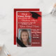 Vackert rött, svart och vitt, personlig, Skräppost/av till College party / studentfest / dorm duschinbjudan för flickor med svart studentmössa och plats för att lägga till ditt foto. Kontakta oss om du behöver hjälp med att anpassa eller matcha produkter.