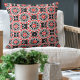 Modern vibrerande kuddedesign för utomhusbruk med sömlöst mönster tillverkat av geometriska former i rött, svart, vitt och grått.