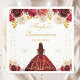 This elegant and glamorous Quinceañera napkin features a beautiful princess with dark hair in a tiara and red ball gown. The text combines handwritten script and modern sans serif fonts for a classy and sophisticated look. The floral arrangements and gold confetti create the perfect blend of rustic and chic. Graphics by www.etsy.com/uk/shop/SunflowerDayLove